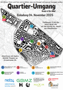 Vereine und Gruppen aus dem Quartier laden ein, gemeinsam den Kreis 4 zu entdecken. Wir zeigen, was uns bewegt und was wir im Quartier gestalten möchten – mit Musik und Begegnungen unterwegs.